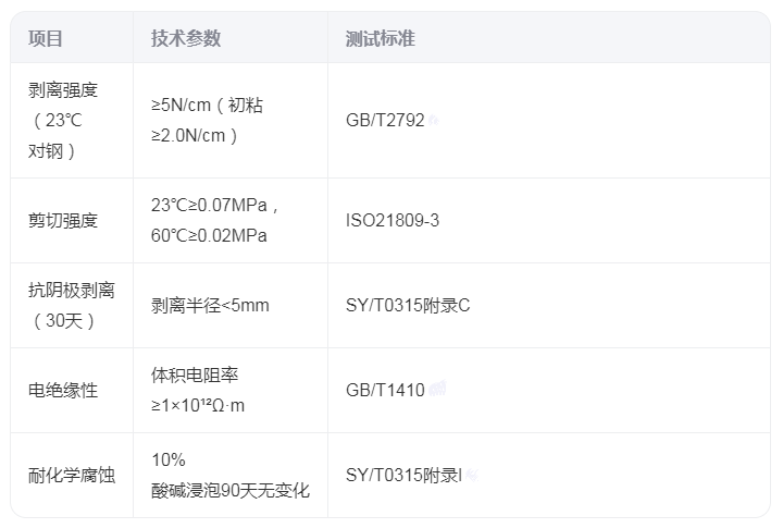 粘彈體防腐膠帶的關鍵性能指標可分為基礎物性、防腐效能及施工適配性三大類,具體如下: